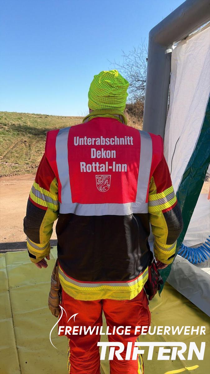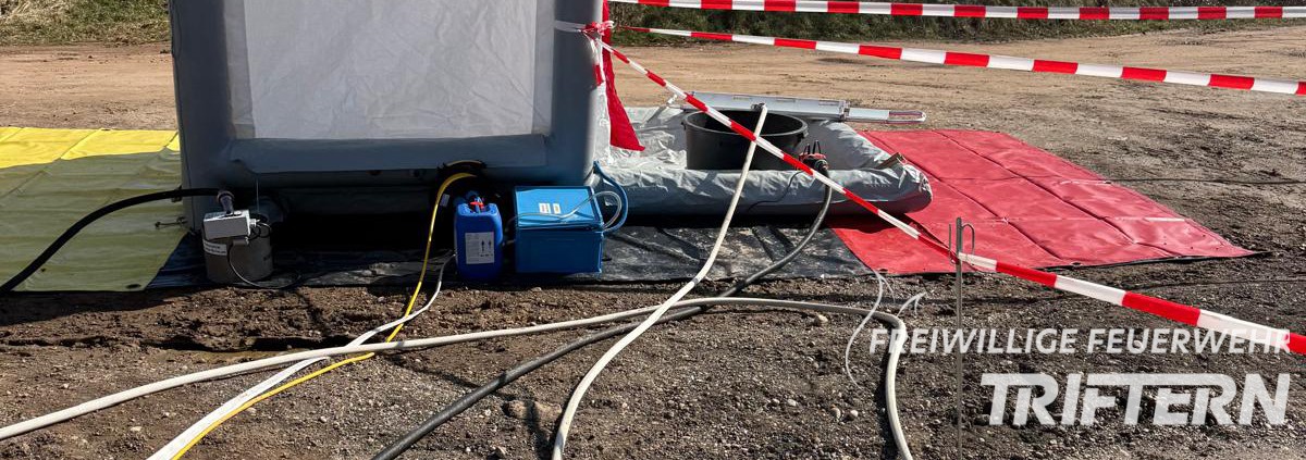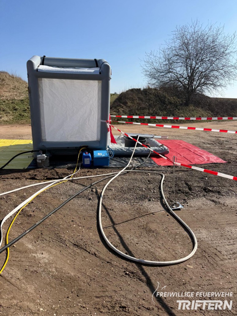 Vor Ort hatte wir die Aufgabe unsere Dusche zur Dekontamination bereitzustellen. Die Gesamtführung im Bereich der Dekontamination übernahm die Feuerwehr Triftern.