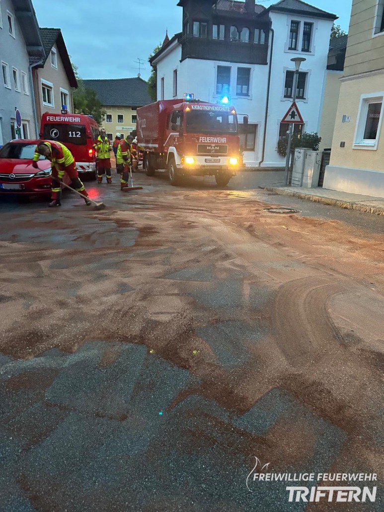 Die Ölspur im Ortsausgang in Richtung Pfarrkirchen wurde durch unsere Kameraden schnell und vollständig gebunden. Auch wurde eine weitere im Markt durch uns entfernt.