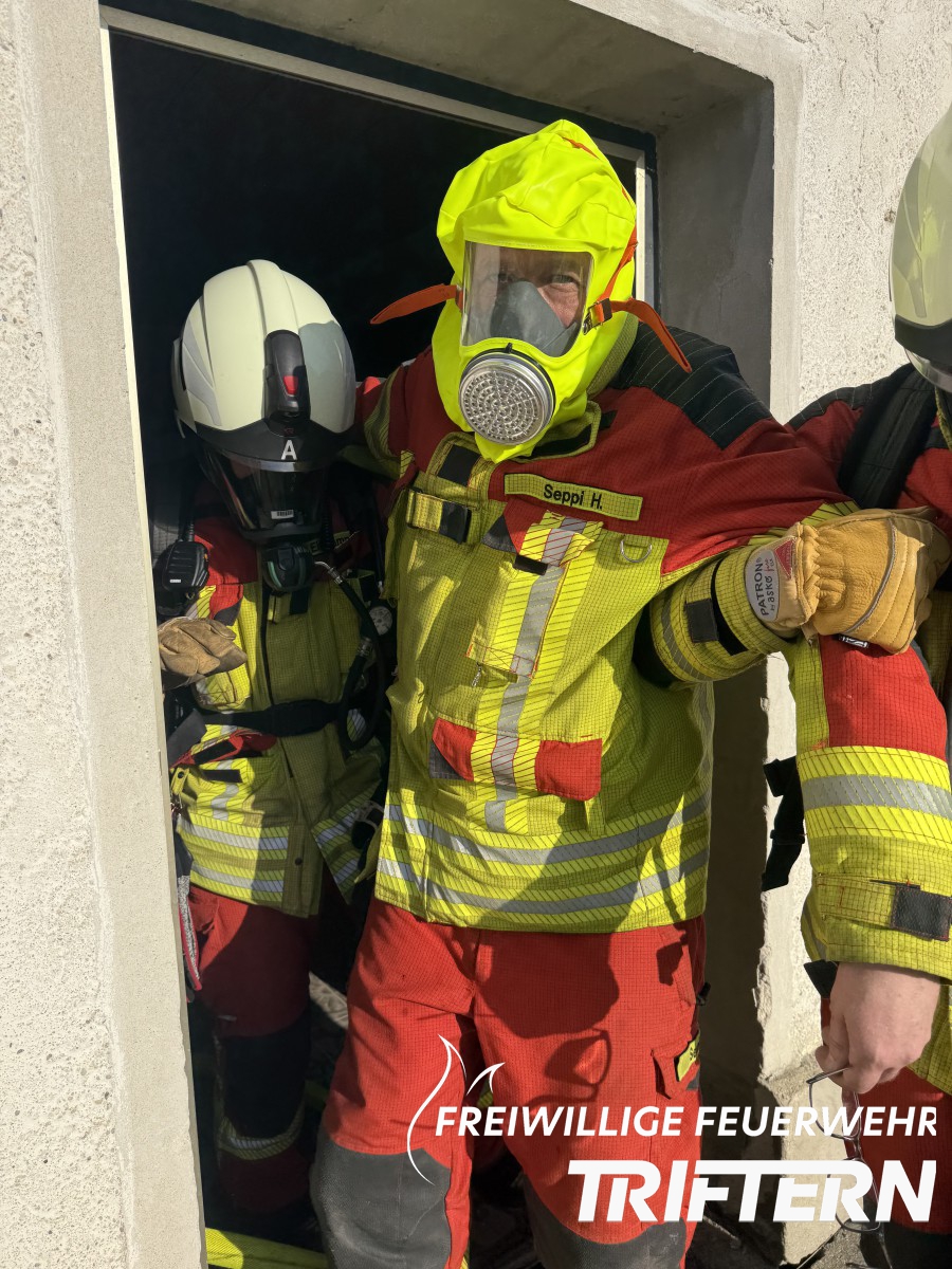 Am Nachmittag wurde es dann ernst, die lang ersehnte Abschlussübung stand vor der Tür. Für diese Übung hatte sich unser Atemschutzgerätewart etwas ganz Besonderes einfallen lassen, ein angenommener Zimmerbrand in einer Küche mit Personen in Gefahr. Durch das zur Verfügung stellen eines Abbruchhauses im Bereich Triftern, durch einen Unterstützer der Feuerwehr, konnte diese Übung unter Realbedingungen durchgeführt werden. Das komplette Haus wurde mittels Pyrotechnik (Rauchbomben) verraucht, sodass ein realistisches Übungsbild entstand. In rekordverdächtiger Zeit konnte auch dieses Szenario von unseren Trupps sauber und kontrolliert abgearbeitet werden.
